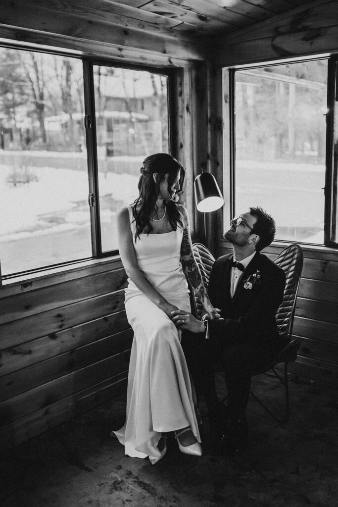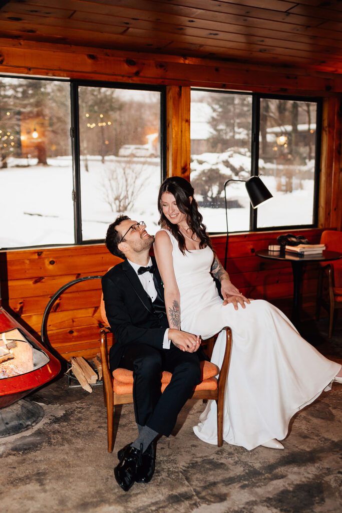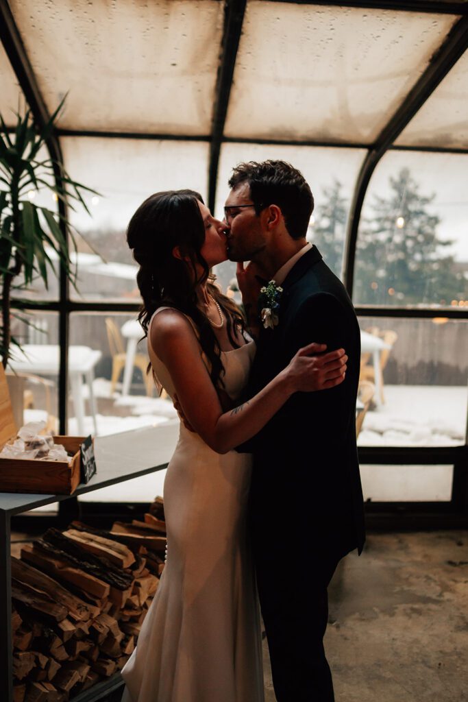 After dinner, Julie and Justin took their bridal portraits. They even slipped outside for portraits in the snow. String lights twinkled above as snowflakes fell softly around them, creating the perfect mix of romance and adventure.